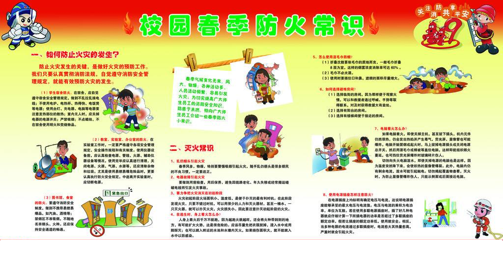 一直高度重视校园防火工作,并积极以具体行动加强师生消防安全知识教育。此次活动以防火宣传展板为主要形式,用文字和图画详细说明了校园易发生火灾情形,初起火灾的扑救方法,灭火器的使用方法,应对突发火灾的疏散方法和逃生技巧,切实丰富了广大师生的消防安全知识,让同学们认识到火灾的危害性,校园防火的重要性和必要性,防患于未然。
