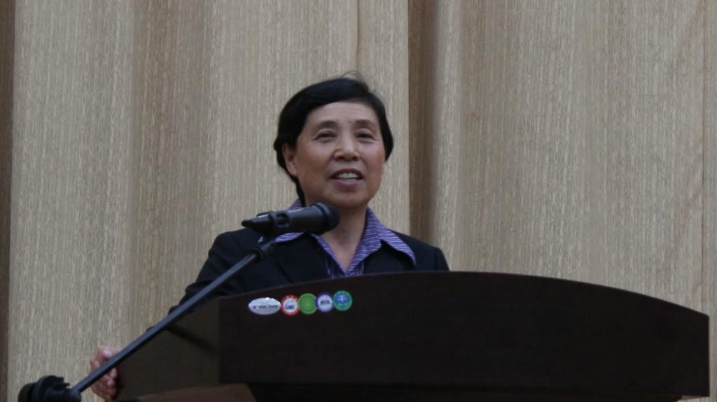学术委员会主席李洁教授讲话,李老师以“放飞理想、下‘笨’功夫、了解社会、直面人生”四个凝练的词语鼓励新生们励志、勤学,走出大学的象牙塔,为将来融入社会做足准备。李老师以“期待与朝气蓬勃而带着成熟的你们再聚首”作结,表达了对新生们的殷殷期盼。
