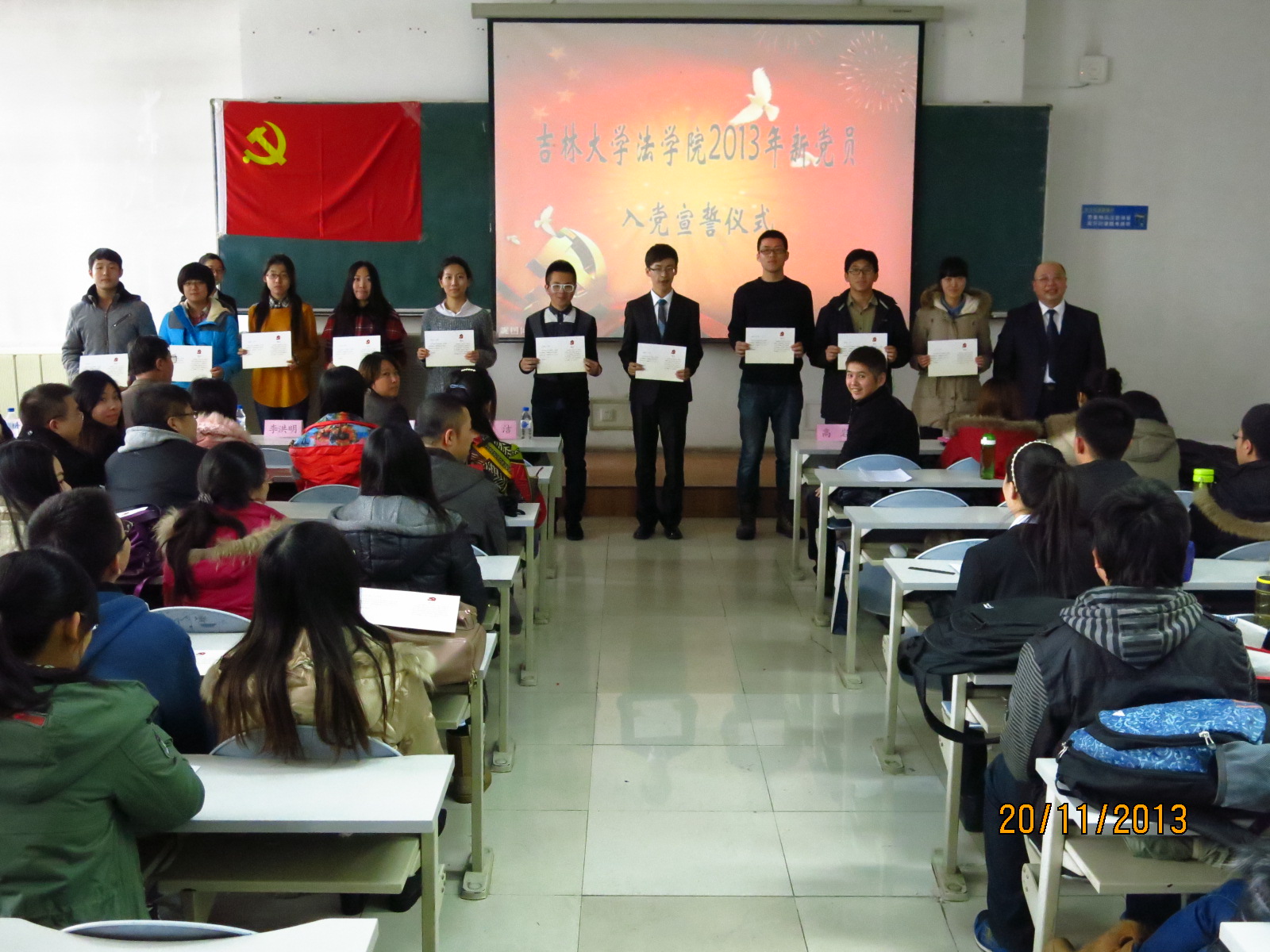 副院长李建华同志、团委书记高岩同志、研究生工作办公室、学生工作办公室全体工作人员以及2013年新发展的101名预备党员到场参加了仪式。仪式由赵洁同志主持。