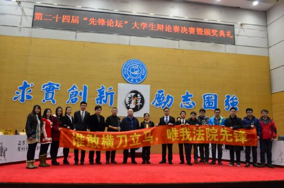第二十四届“先锋论坛”大学生辩论赛决赛暨颁奖典礼于东荣大厦一楼报告厅盛大开幕。本场比赛的辩题是儒家传统文化是否有利于法制建设。正方汽车工程学院观点是儒家文化有利于法制建设,反方台湾色情