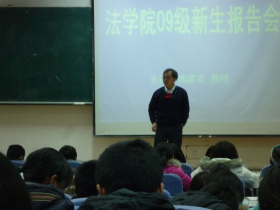 会上,姚建宗院长用一个个生动有趣的事例对同学们进行了深入浅出的教导。姚院长首先就中英两国的法学教科书和两国的教学方式与学生的学习情况进行了对比,以此来告诉同学们,我国学生拥有良好的学习环境、教学资源以及较轻的学习负担。他鼓励和提醒同学们要珍惜并充分利用现有的教学资源,坚持刻苦奋斗、努力学习。