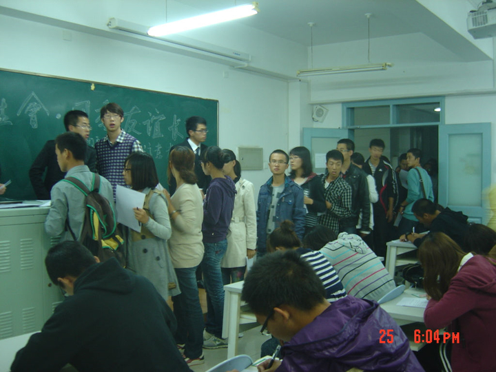 学生组织纳新,25日下午的宣讲会后,四大组织纳新笔试、面试环节于当日晚六点在第三教学楼五楼小教室举行。