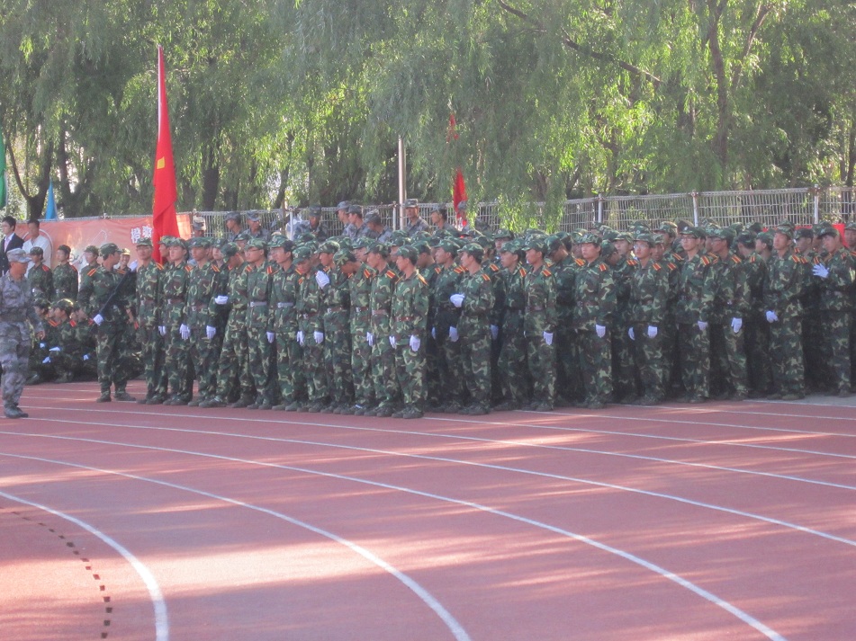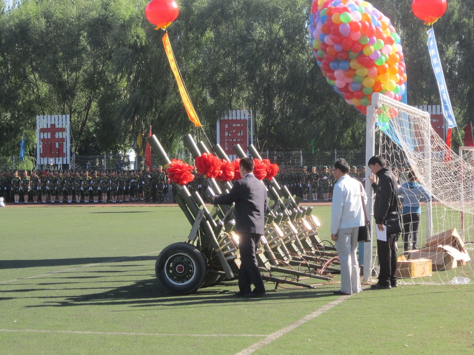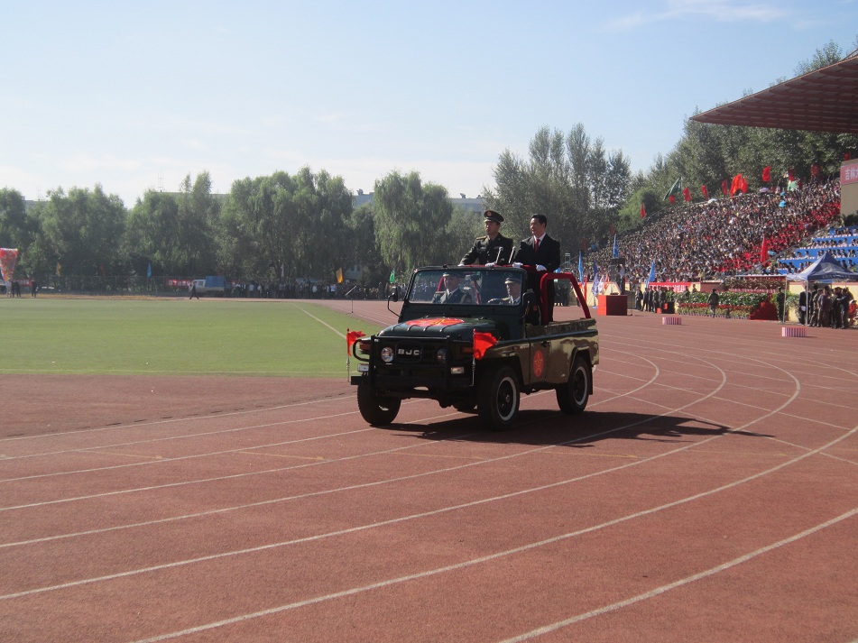 随着六架礼炮轰响齐鸣,大会正式开始。第一项——升国旗、奏国歌。庄严肃穆的国歌声令人们不禁肃然起敬。随后,升校旗、唱校歌,这曲伴随吉大多年的旋律深深萦绕在每位吉大人的心中。紧接着,三位英姿飒爽的军人身扛军旗走向主席台,校长李元元坐上检阅车开始举行阅兵仪式。同学们的军姿站得笔直,纹丝不动,口号声嘹亮高亢,完美地向领导老师们展示这两个星期艰苦训练的成果。紧接着,另一批方阵的精英们表演了威武生风的军体拳,这是对“巾帼不让须眉”的最好诠释,振奋人心的口号让全场掌声经久不息。
