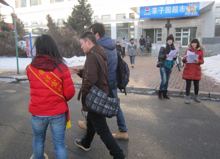 本次活动持续了将近一个小时,每位同学都面带微笑在寒风中耐心讲解,活力没有一丝下降,热情没有一次消散,在大家的不懈努力下,800多份宣传手册及传单都发放出去了。对于这个成果,班长卢晴川非常满意,他说:“也许我们的力量还很卑微,但是一想到我们每出一份力,社会上就多了一个能够正确维权的消费者,浑身就又充满了力量。”