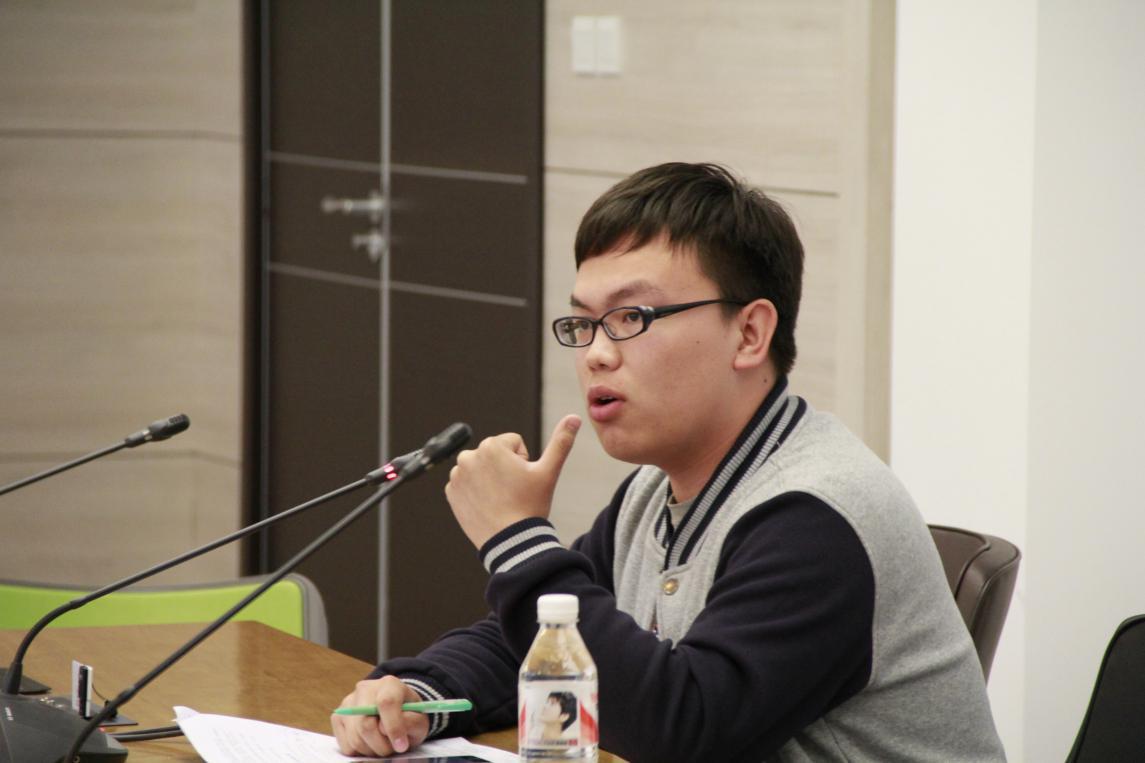 然后,是12级的明瑜、鲍文强、袁鹤鸣三位同学上台发言。与13级的同学相比,他们思考的角度更加多样化,论据也更加充分,不仅赢得了台下的阵阵掌声,也得到了老师们的点头赞许。