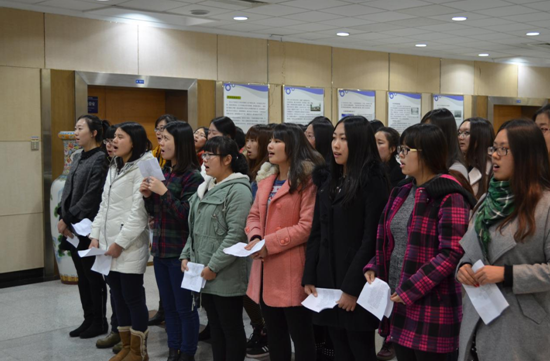 首先,黄老师带领大家做了基础发声练习,党员们在老师的鼓舞下放开歌喉,一声比一声嘹亮,赢得老师的不住赞许,称“大家都是很有天赋的”。接下来就是两首合唱曲目的练习了,两首歌曲分别是《歌唱祖国》和《长江之歌》 。在老师的指挥下,党员们进行男生女生合唱与分唱的练习。一遍遍的训练,歌喉愈发嘹亮;一次次的合唱,歌声愈加悠扬。