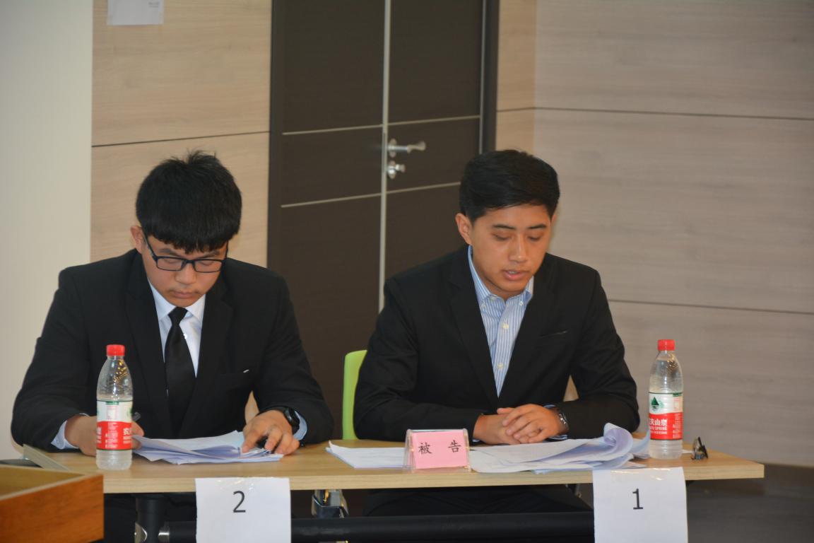 上午8:30,半决赛第一场拉开帷幕,原告熊猫特攻队与被告木石队在经信教学楼二楼D区进行了激烈的较量,本场比赛由李丽娟担任审判长,并同两位审判员——李立丰、梁伟组成合议庭。比赛开始后,首先由原告方宣读其代理意见,原告认为其当事人赵丹与被告签订合同构成表见代理,要求返还购车款十万元并支付相应利息,且诉讼费用由被告方承担。被告方也发表了自己的答辩意见,认为其一原告与被告的表见代理并不成立,其二原告赵丹已作为姜丹诈骗案的受害人接受了一部分补偿,不应再请求赔偿了。随后,合议庭总结了双方争议焦点,即表见代理成立与否和赵丹既已接受刑事案的补偿是否还应再请求民事赔偿。