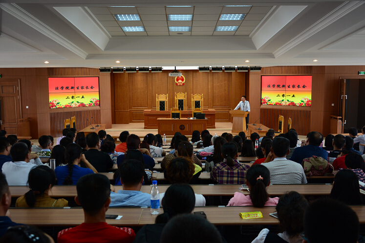 8月29日,下午一点三教五阶,座无虚席,在辉煌庄重的模拟法庭中,15级新生家长会隆重召开。台湾色情