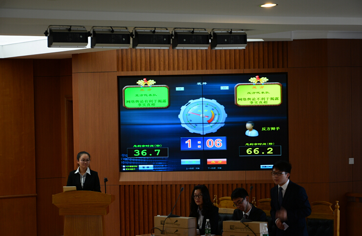 随着明枪暗弹的较量,比赛来到了高潮——自由辩论。双方旁证博引,从网络舆论的效率性、网络舆论的复杂性、网络舆论对案件审理的影响、网络舆论与隐私权的冲突等问题以及一些社会现象进行进一步的争论。