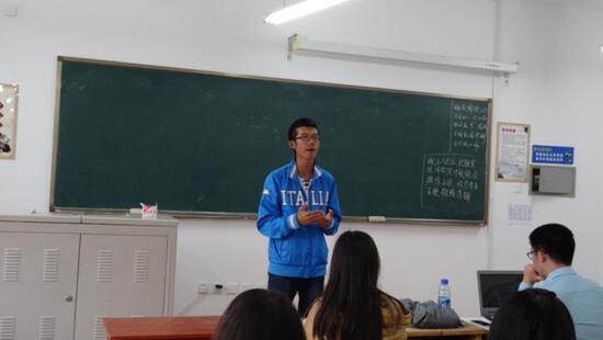 在会议之初,首先由董泽发表讲话,阐述班委选举的流程及其重要意义。他提到“尽管竞职是一种演讲,但是此刻你为未来四年许下的承诺一定要慎之又慎。因为如果说得出,就要做得到。”
