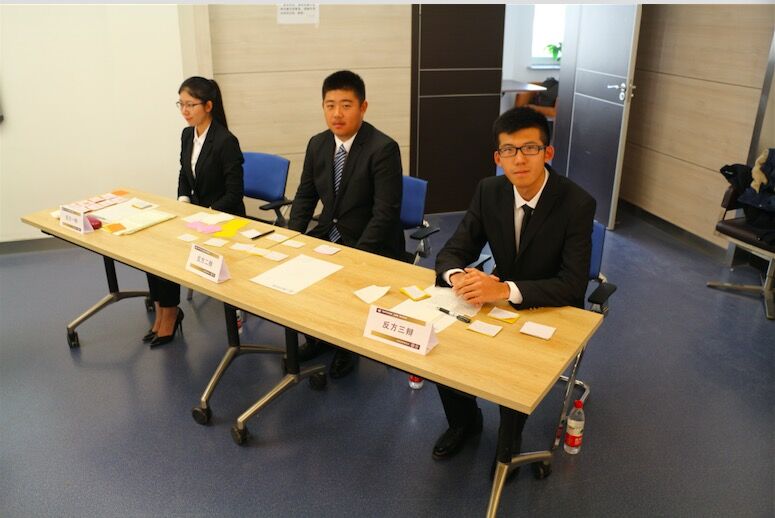 在主席宣读辩手、评委介绍和赛事规则之后,比赛正式开始。双方辩手沉着冷静,仪态大方,有礼有节。立论、攻辩、自由辩论、总结陈词有条不紊,环环相扣。正方在立论阶段便提出了“宽进”对减少基础教育压力,促进高等教育大众化的重要作用。进而阐释“宽进严出”对促进大学生个性发展,培养适应社会需要的人才的独特作用。反方则认为“宽进”则会使生源质量参差不齐,影响教学效率。而更早地对学生进行严格筛选既能促进教学资源的有效利用,又可以使不同能力的学生更早地找到适合自己的发展方向。双方旁征博引,据理力争,在己方立场上继续对大学生实践能力的培养、个性的发展、教育资源的分配等问题进行了深入的阐述和论证。在双方进行总结陈词后,比赛进入中场休息,有三位评委打分评定。