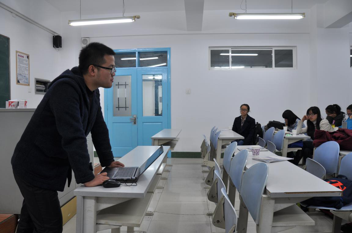 一班于2015年11月6日下午5时30分,在三教307教室举行了学习交流会。参加交流会的有一班班代金毅,大三师哥成亮、叶维扬,大二师姐刘蕾、王宇琪,大二师哥陈越瓯,以及15级一班全体同学。