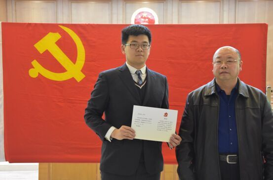 接着,院党委书记李洪明研究员为新党员颁发入党通知书,并在党旗前一一合影。摄影师按下快门,记下新党员们的此刻的喜悦,也记下了他们对党的誓言,对人民的承诺。当证书从李书记的手中递到新党员们手里,带给他们的希望是满满的,交给他们责任也是沉甸甸的。