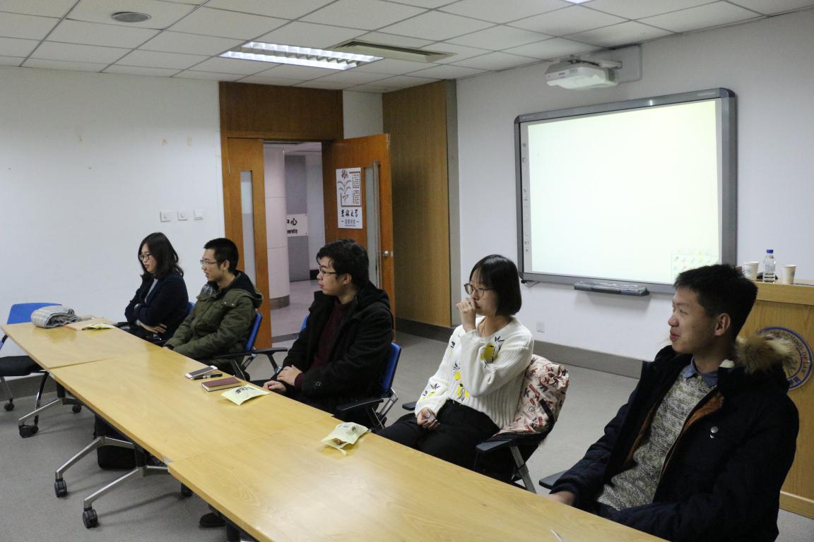 本科分团委副书记,王沛然师哥首先从如何协调处理好学生社团组织工作和个人学习时间入手,对师弟师妹们提出了几点忠告,建议大家尽早选择适合自己的大学生活。黄丽倍师姐则主要从双学位角度给大家提出来几点建议。郭晓艳师姐从日常学习和备考两方面进行了经验方法的交流。大二六班的李徵师姐在发言中,强调了在所有科目,在任何考试中基础知识的重要性。而极具学术风范的谢金池师哥的发言,在理解概念等方面进行了由浅入深的指导,并且在如何运用学校学术资源方面给大家提出来建议。最后,乐观开朗的陈俊达师哥建议大家在大学的生活态度上保持积极乐观的心态,同时也就备考方法进行了指导。