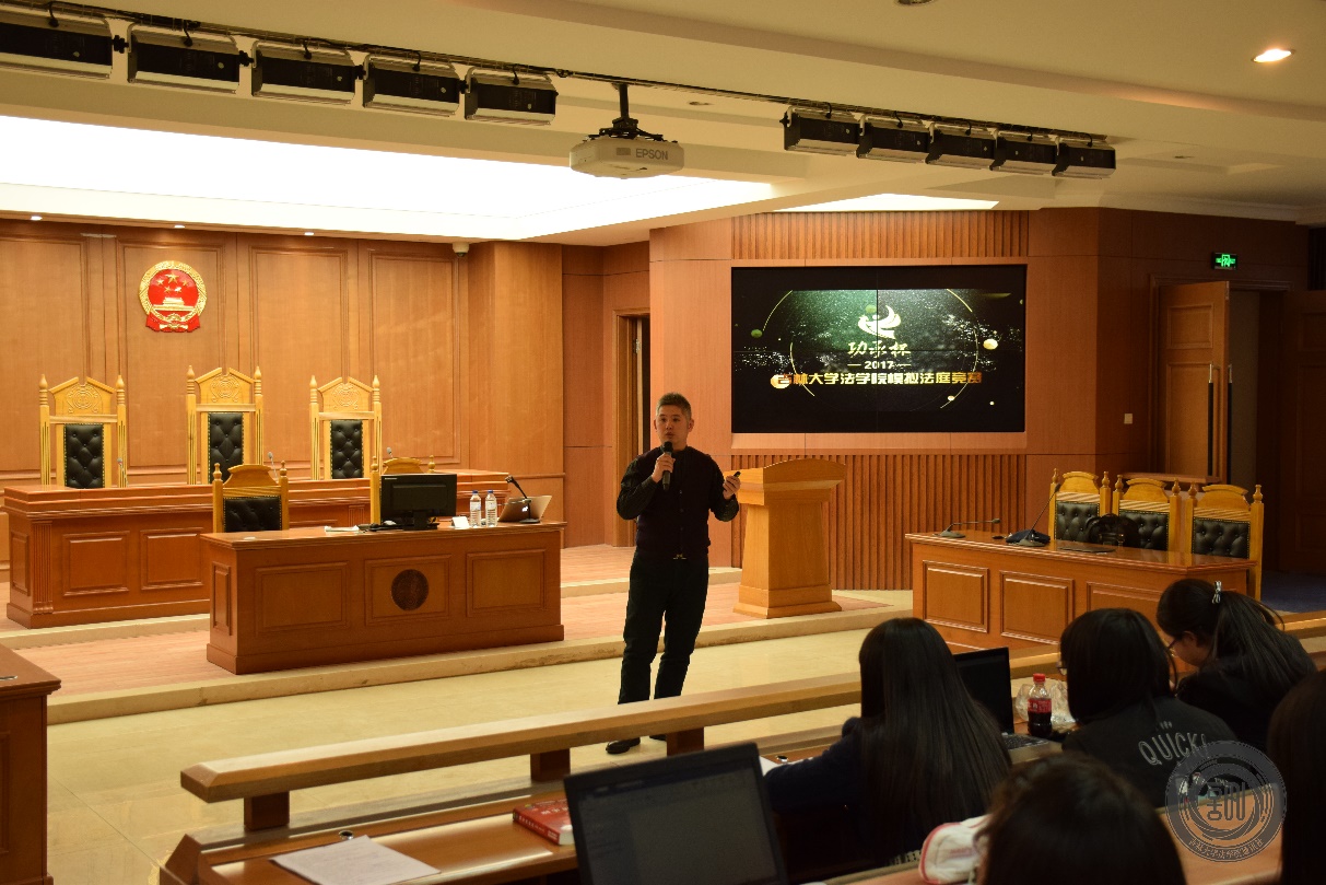 2017年4月25日晚六点,2017年“功承杯”模拟法庭竞赛预备会议在三教五阶召开。本次说明会由高岩老师主持,旨在比赛前对赛事进行基础的说明,使选手对本次比赛有初步的了解。