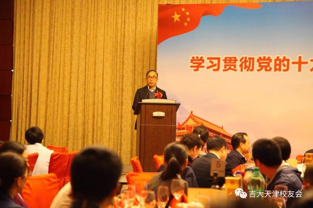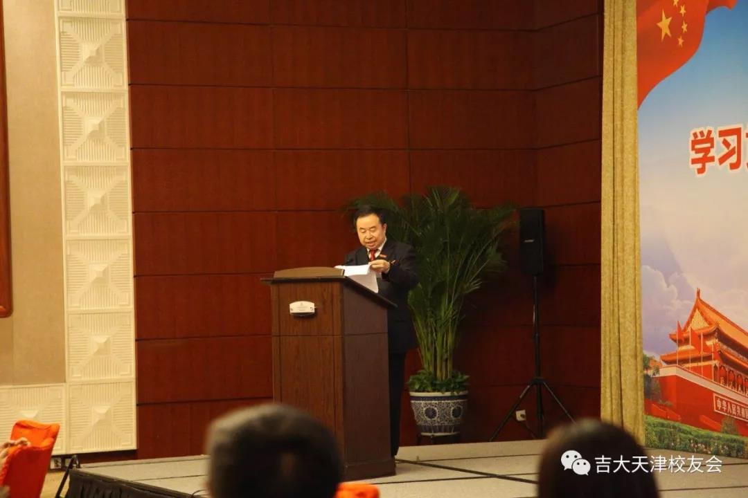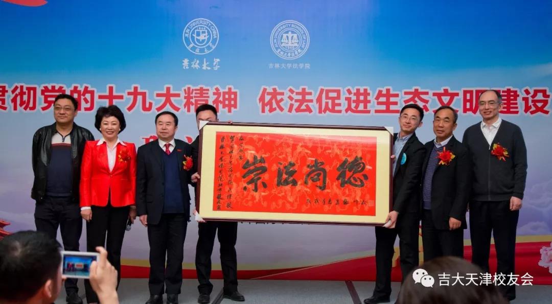 天津校友会时,他强调,成立本会是给校友在天津的学习生活工作提供交流互助的平台,成立本会是为了以实际的行动支持母院事业发展,成立本会是为了更好地服务于天津的“五个文明”建设。在谈到为什么要有隆重的仪式时,他指出,干事要有仪式感,仪式体现庄重,仪式彰显母院尊严,隆重的仪式振奋校友的精神。在谈到为什么要选定“学习贯彻党的十九大精神 依法促进生态文明建设”这个会议主题时,他阐明,党的十八大以来,以习近平同志为核心的党中央高度重视生态文明建设,党的十九大报告强调了构建人与自然生命共同体的重要理念,加强生态文明建设也契合天津经济社会发展的实际,作为一名法律人,理应多从法治的视域为生态文明建设建言献策,要依法促进和支持生态文明建设这项伟大的事业。在谈到今后如何办好校友会时,他提出,应当更好地为校友提供服务,要多地为母院事业发展出力,更好地凝聚大家智识、促进天津发展。同时,要响应党和国家京津冀协同发展号召、促进三地校友合作交流、共推京津冀协同发展。最后,他代表天津校友对蔡立东院长、马新彦教授、胡英娣和刘冬主任一行不远千里而来表达谢意,对台湾色情