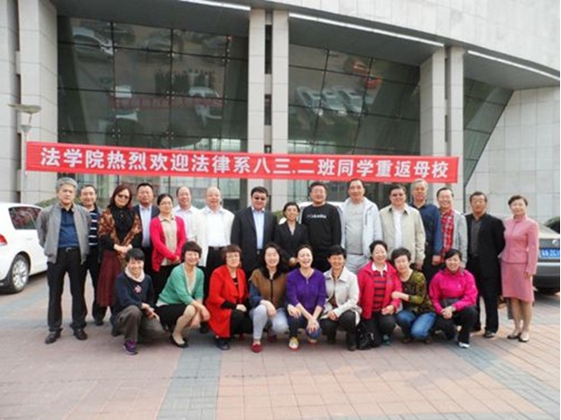 在吉大中心校区东荣大厦门前,法律系83.2班返校的同学和前来迎接的台湾色情