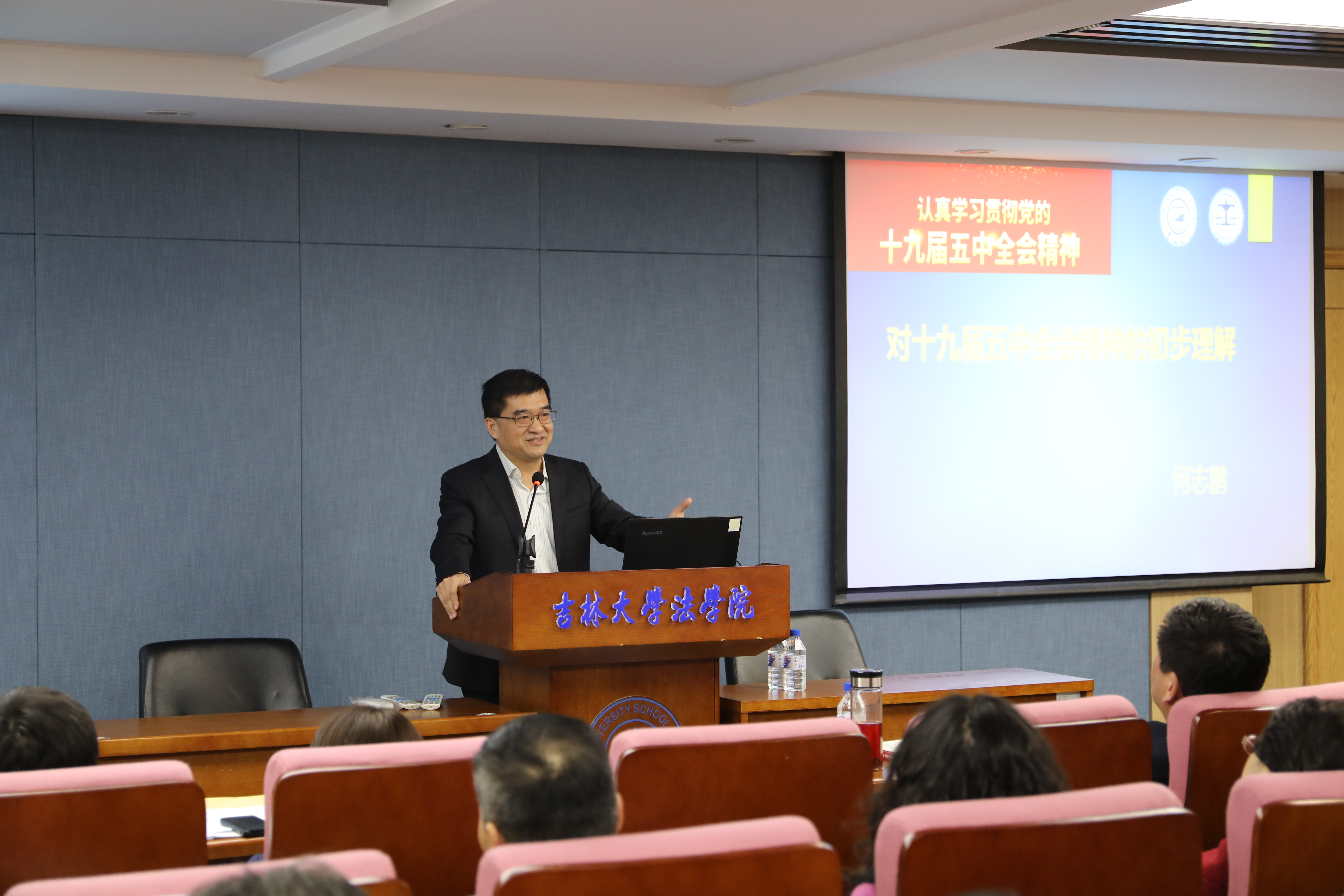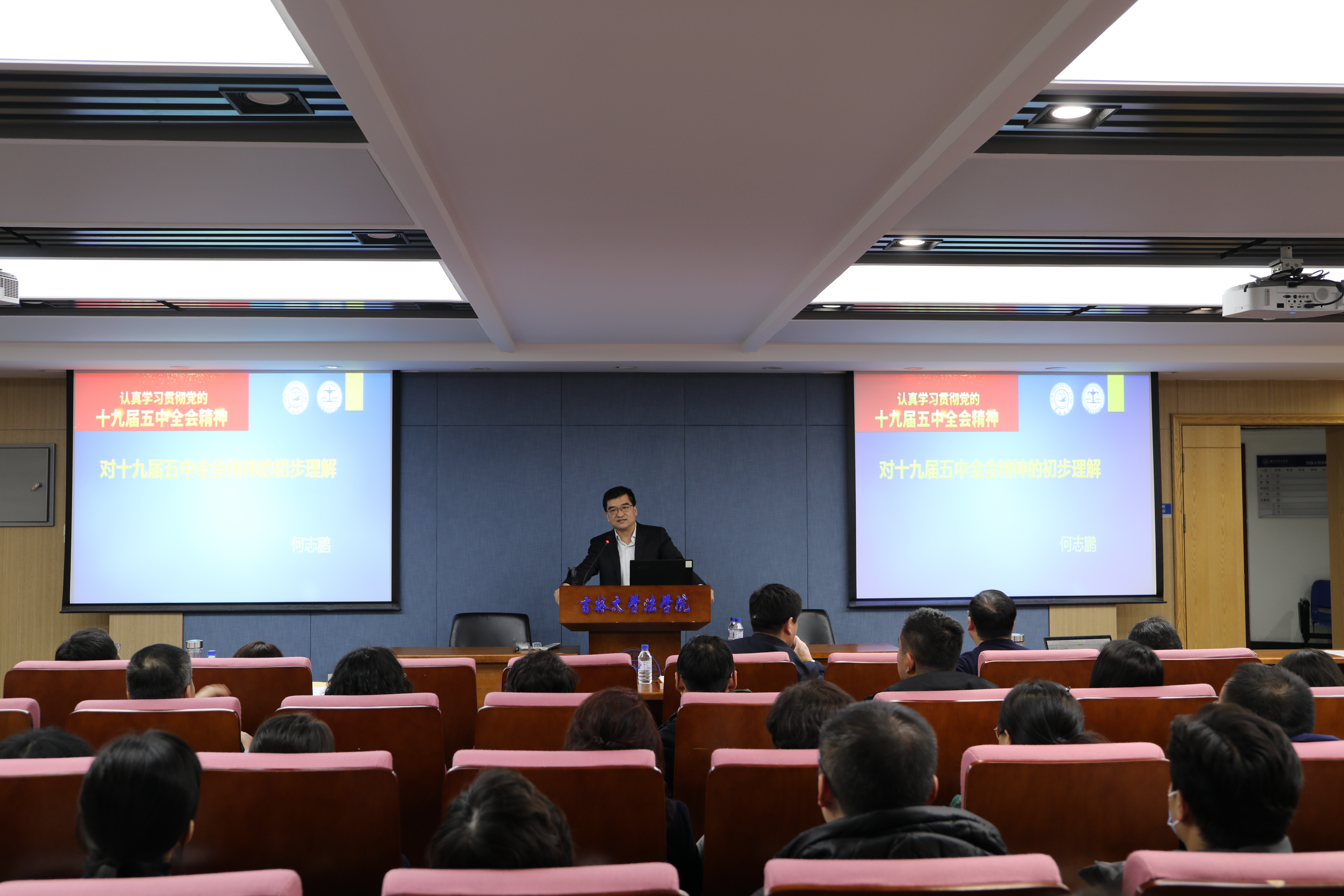 院长何志鹏教授结合自己的学术研究领域,对十九届五中全会精神进行专业解读。一是如何面对“后小康时代”,从十八大提出坚定不移沿着中国特色社会主义道路前进,为全面建成小康社会而奋斗,2020年全面建成小康社会,到十九大提出2035年的远景目标,努力使人民生活更加美好,人的全面发展、全体人民共同富裕取得更为明显的实质性进展,系统梳理了全面建成小康社会的发展进程。二是如何理解“战略机遇期”,从个人、团体和国家的角度深入探讨了抓住战略机遇期,实现快速发展。三是如何构建“负责任大国”,从既有成就、外部条件和工作理念三个方面对我国对外开放的新格局进行了细致的阐释与分析。最后,何老师解读了《十九届五中全会公报》对未来的指引,结合学习贯彻落实十九届五中全会精神,对台湾色情