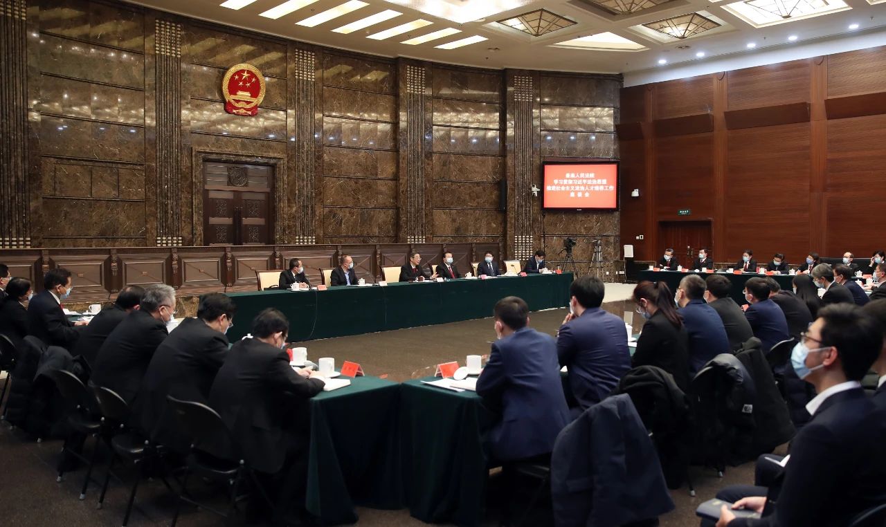 1月12日下午,最高人民法院召开学习贯彻习近平法治思想、推进社会主义法治人才培养工作座谈会,最高人民法院党组书记、院长周强出席座谈会,与挂职学者、研修学者、法律实习生深入交流,听取意见建议。周强强调,要坚持以习近平新时代中国特色社会主义思想为指导,深入学习贯彻习近平法治思想,坚持理论与实践相结合,不断完善培养机制,为推进全面依法治国、建设社会主义法治国家培养更多高素质法治人才。