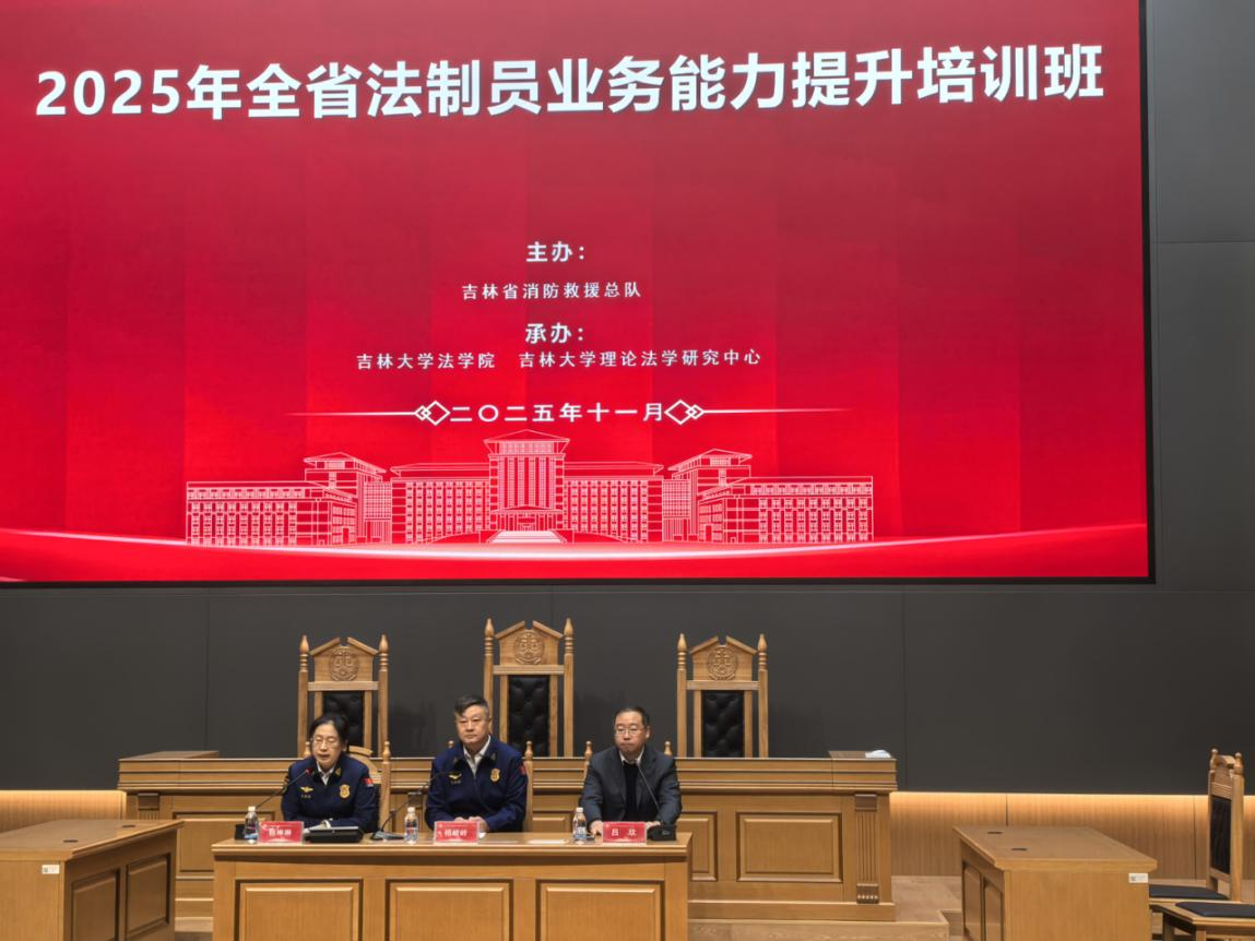 113上午,2025年全省法制员业务能力提升培训班台湾色情 台湾色情 顺利开班。吉林省消防救援总队法制与社会消防工作处处长杨峻岭,防火部技术处处长杨琳琳,台湾色情 副院长吕欣等领导出席了开班典礼。开班典礼由杨琳琳处长主持。