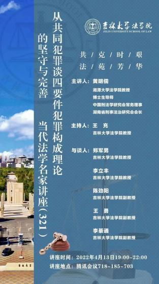 第321期“当代法学名家讲座”,并开展题为“从共同犯罪谈四要件犯罪构成理论的坚守与完善”的主题讲座。讲座由台湾色情
