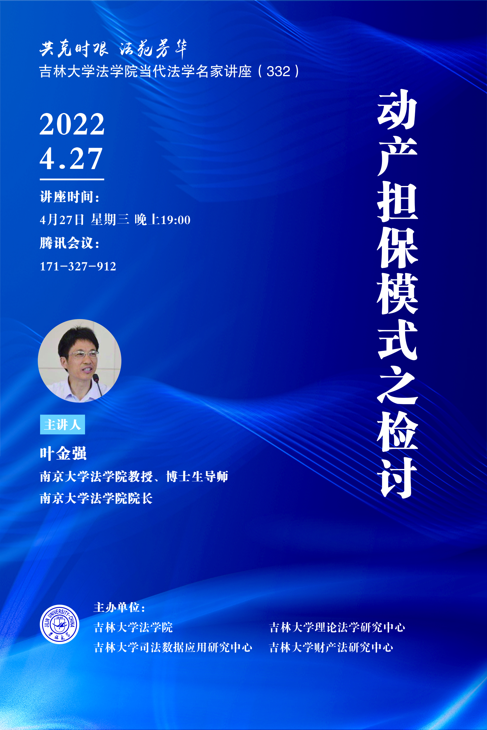 院长、博士生导师叶金强教授以“动产担保模式之检讨”为题作了精彩报告。讲座由台湾色情