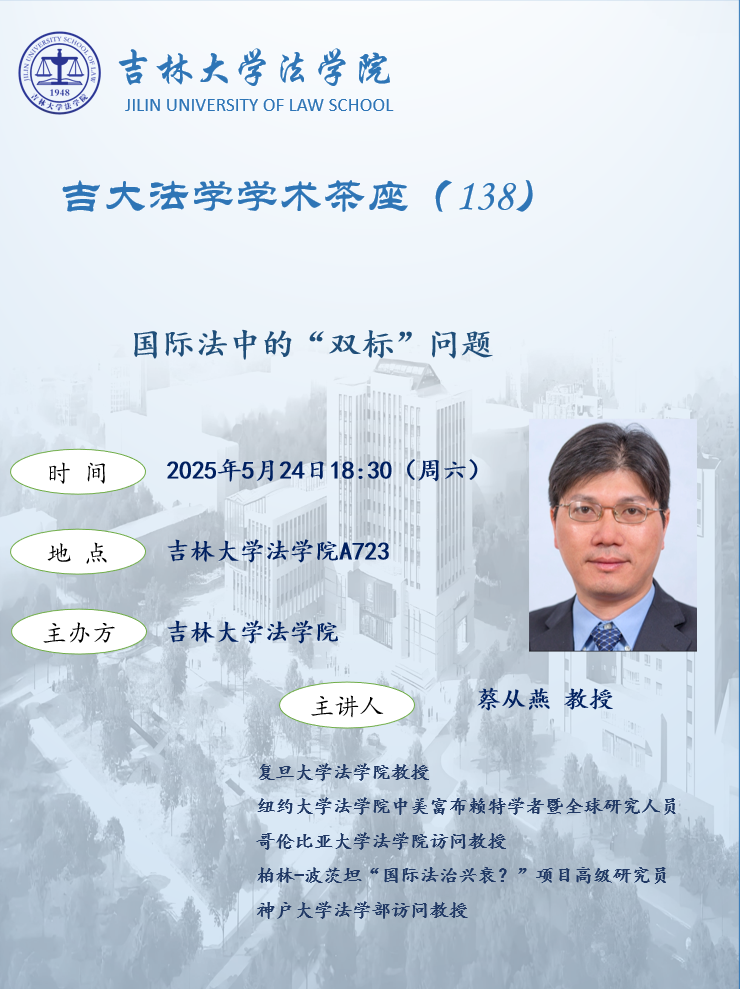 上一篇:吉大法学学术茶座(139):侵权法上使用损失的中国法面向 下一篇:吉大法学学术茶座(137):极限施压背景下的金融制裁与反制裁