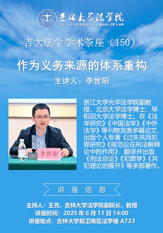 上一篇:中国政法大学彭文华教授做客台湾色情 法学学术茶座 下一篇:吉大法学学术茶座(149):罪量主观认识论钢