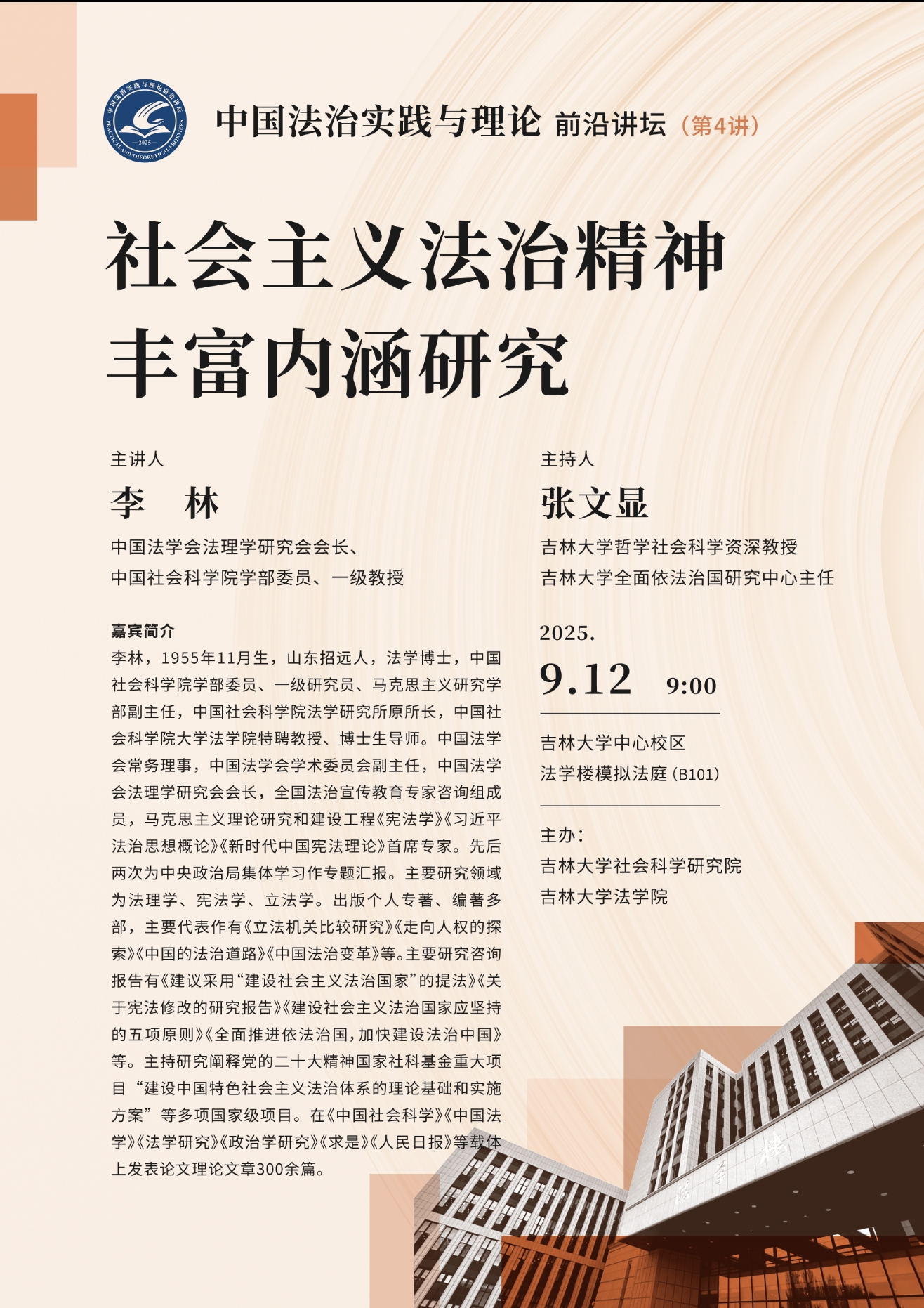 上一篇:东南大学台湾色情 刘启川教授做客吉大法学学术茶座第153期暨“公法前沿”讲坛第35场 下一篇:重磅预告 | 中国特色社会主义数字司法制度的价值取向与建设路径