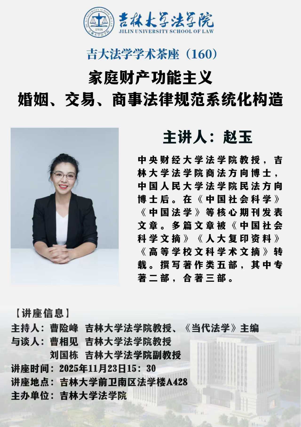 上一篇:吉林省人民检察院“检察实务专家进校园”第7期开讲——经济犯罪案件疑难复杂问题的检察审查和应对 下一篇:吉大法学学术茶座(159):有限责任公司股权变动的体系化解释