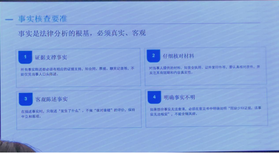 事实核查要准:强调事实是法律分析的根基,必须做到证据支撑事实、仔细核对材料、客观陈述事实,对无法查清的事实需明确说明,确保内容真实客观。