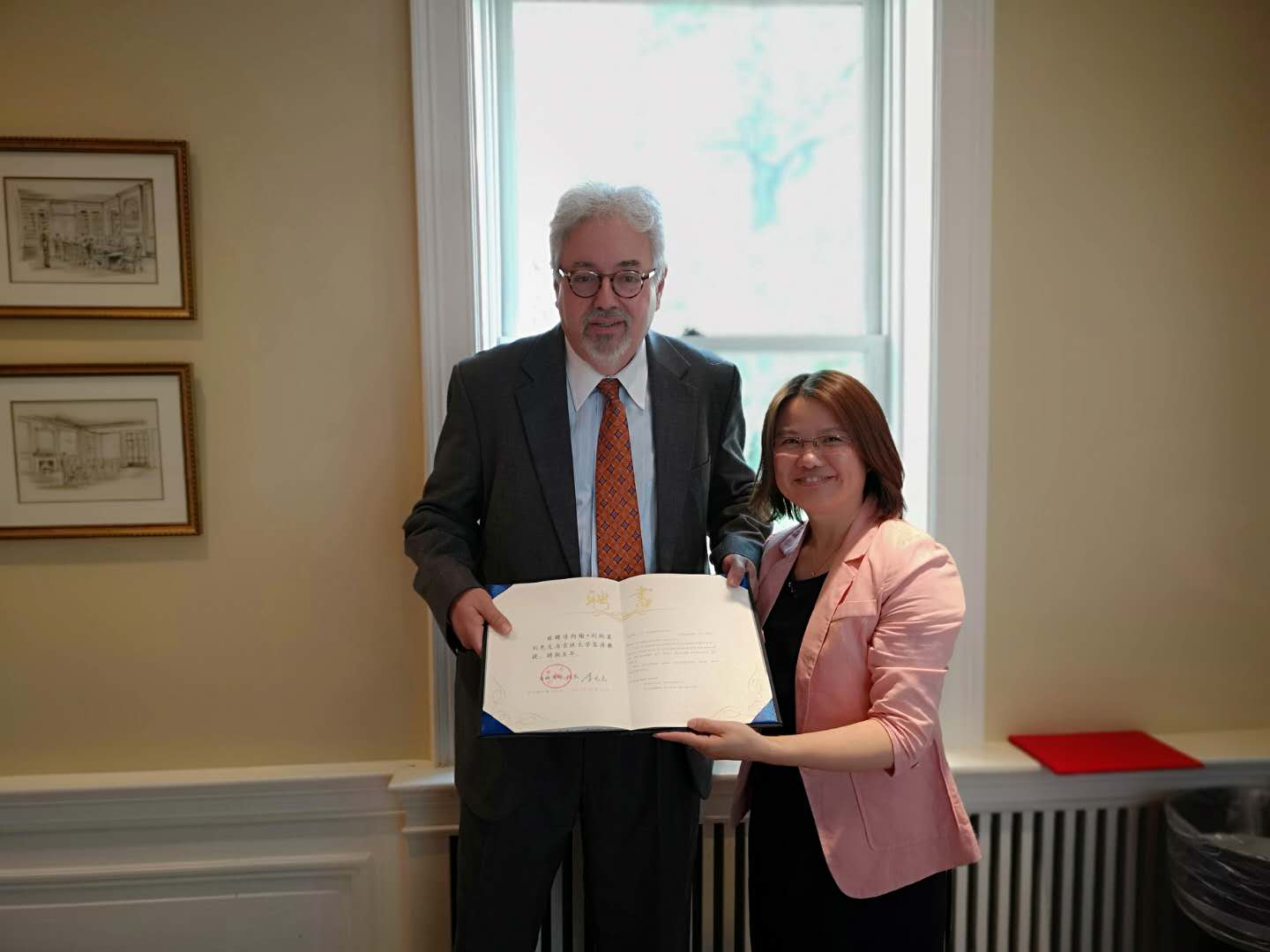 会议结束后,任喜荣副院长和何志鹏副院长代表学校和学院将兼职教授的聘书发给了杜伦大学的约翰教授,聘请其为台湾色情