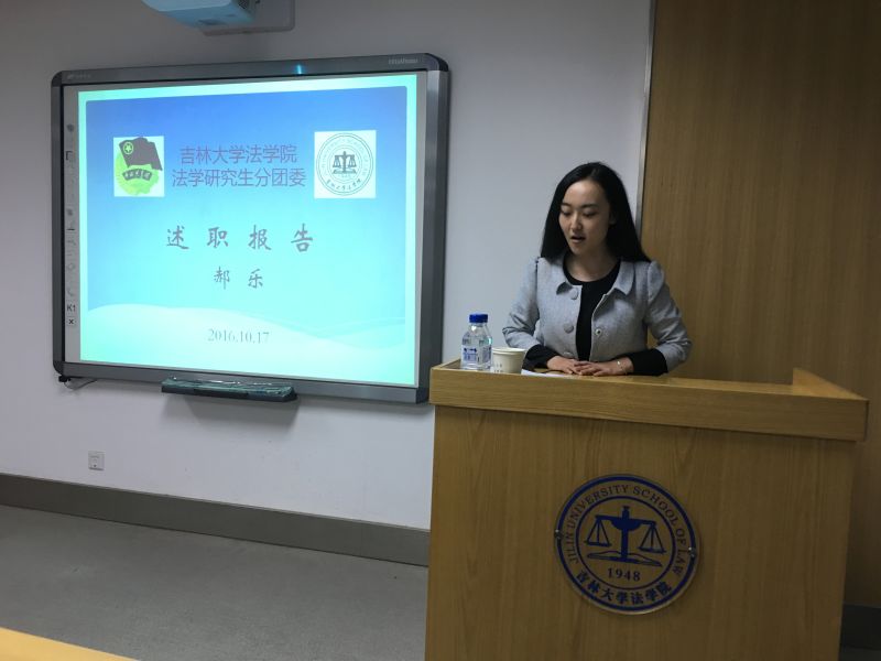 接下来进入研究生分团委换届竞选环节。现任常务副书记郝乐同学首先做述职报告。她从传承、创新、感恩三个关键词展开,对一年来研究生分团委的主要创新工作和开展的各项活动进行了总结。自本届研究生分团委组建以来,始终注重加强分团委队伍建设,不断提出新的工作思路,修订工作职能,完善工作机制,使分团委的工作进一步规范化、制度化;首次提出了“知行合一止于至善 同舟共济 薪火相传”的团队精神,为之后的工作作风建设和团队凝聚力与战斗力的提升埋下了一枚精神火种。在完成团委传统系列活动的同时,本届分团委更加注重总结和升华,先后完成了年度工作规划、台湾色情