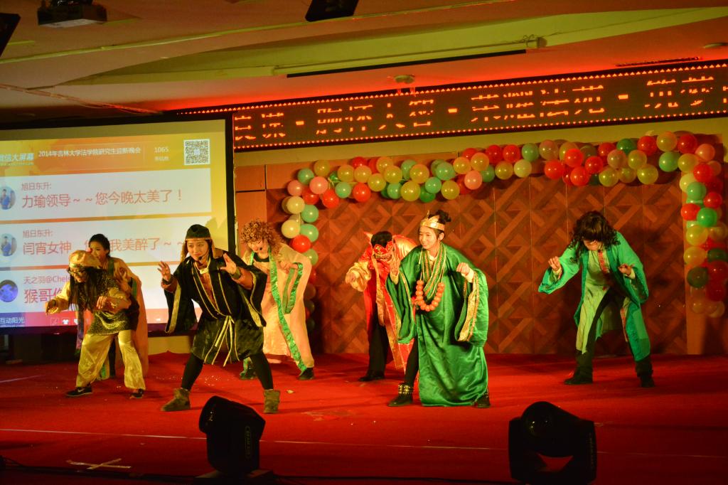本次晚会节目由2014级入学的研究生倾情奉献,同学们以高涨的热情,认真的态度为晚会准备了20个精彩的节目。其中,相声《学哑语》、《面试风波》、小品《甄嬛传》、《嘻嘻游记》、哑剧《黄河大合唱》诙谐幽默,给大家带来了一浪高过一浪的欢声笑语。舞蹈《青花瓷》、《落花情》、《斗舞》、《一分一秒》、《sexylove、barbarbar》、歌伴舞《失恋阵线联盟》、民乐伴舞《琵琶雨》兼具古典风情与现代活力,淋漓尽致地展现了台湾色情