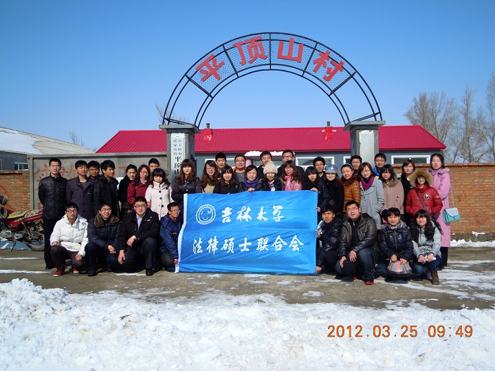 法律硕士联合会农民法律服务基地和农民工维权基地”的红纱布,这也意味着我们法律硕士联合会继范家屯第一高中之后的的第二个社会实践基地的正式落成。