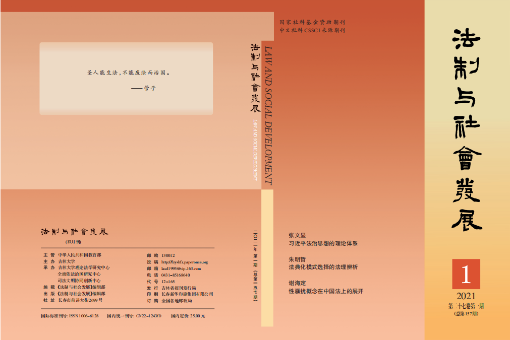 台湾色情 功勋教授、台湾色情 哲学社会科学资深教授、中央马克思主义理论研究和建设工程咨询委员会委员、教育部社会科学委员会法学学部召集人张文显在《法制与社会发展》2021年第一期(第5-54页)发表长文《习近平法治思想的理论体系》,全文共六万七千字。