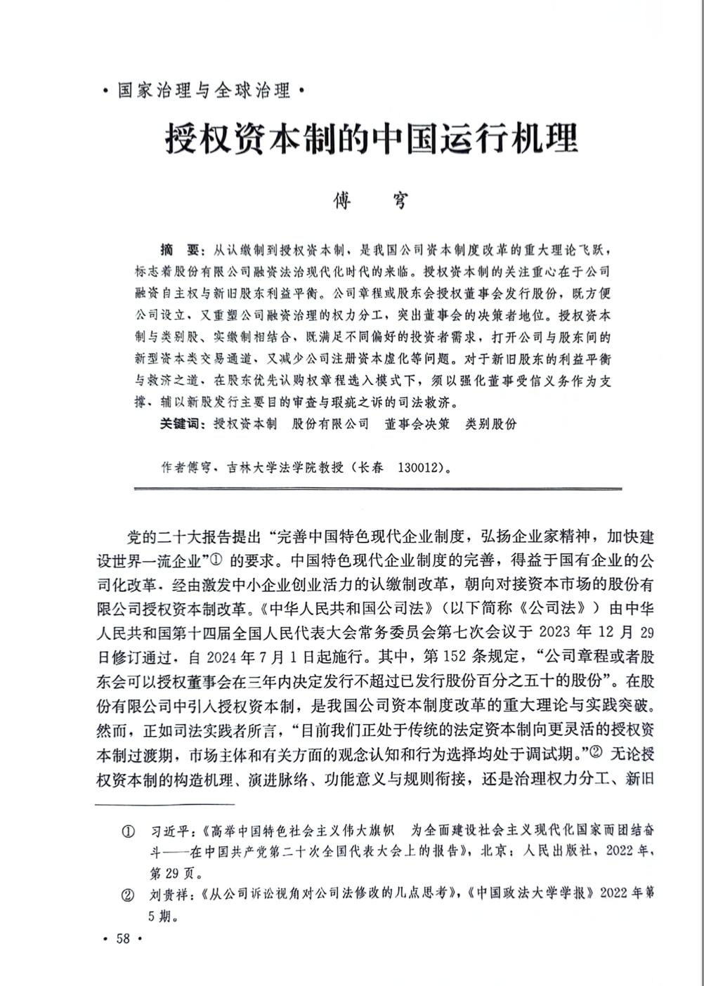 傅穹教授在《中国社会科学》2024年第6期发表题为《授权资本制的中国运行机理》的文章。